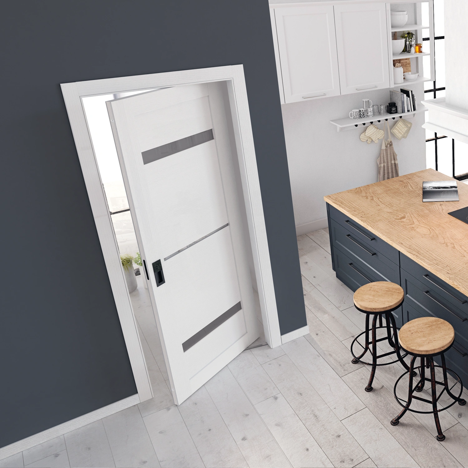 Perfette per ambienti dove lo spazio è prezioso, queste porte combinano funzionalità e stile in un unico prodotto.